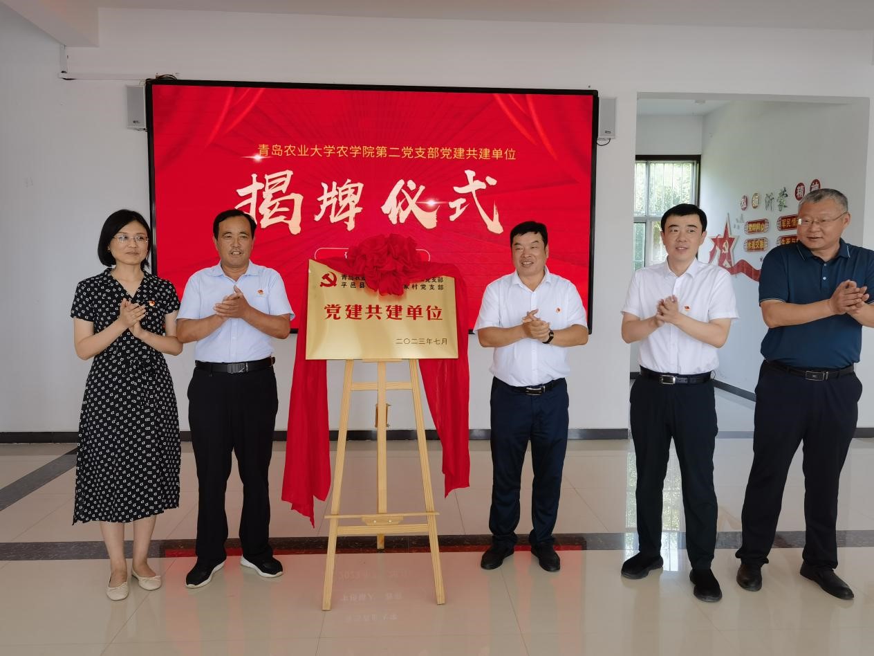 揭牌仪式前,党员们集体参观了时家村村史馆,深入了解了时家村在乡村振兴中取得的优异成绩。在揭牌仪式上,任大鹏介绍了卞桥镇农业发展、乡村振兴、党建引领基层治理等方面开展工作情况,并对我校开展的社会服务和党建服务给与充分的肯定,希望通过开展支部共建来创建校地党建新模式。马伟萍和张恩盈分别作共建致辞,希望通过搭建校地党建共建平台,有效互通党建经验和资源,共同开展党建共建研究,创新合作方式,优化合作内容,规范党支部建设;为校地开辟新的合作领域提供良好契机,充分发挥学院教师的专业优势资源,加强校地在科学研究、科技成果转化、技术应用等方面的进一步合作。时光超希望通过支部共建,以需求为导向,组织开展形式多样的联建共建活动,将党建活力转化为发展动力,促进农业产业发展。随后,与会领导共同为“Ky开元集团第二党支部与平邑县卞桥镇时家村党支部党建共建单位”揭牌。