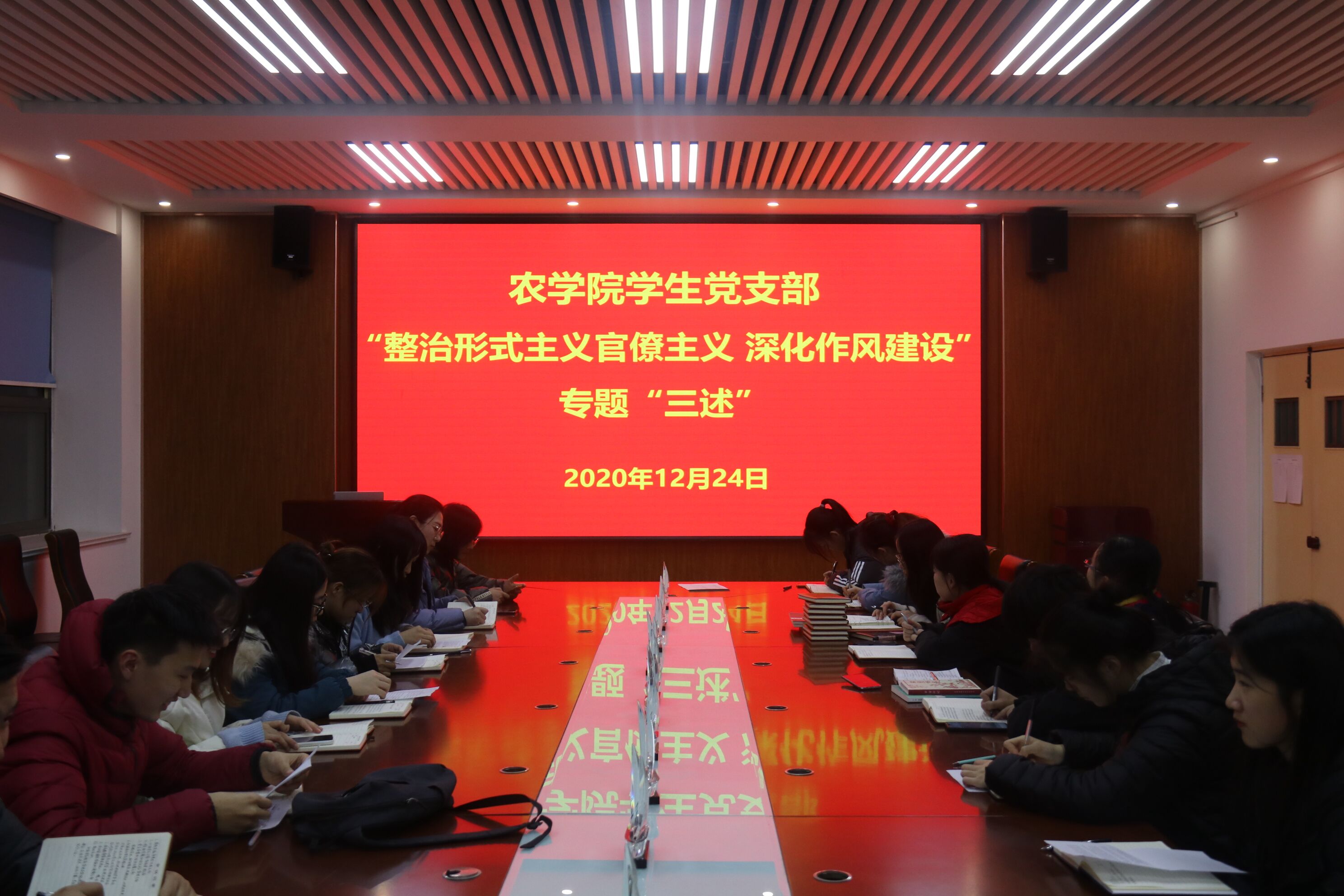 12月24日,Ky开元集团学生党支部于生物楼开展“整治形式主义官僚主义,深化作风建设”专题“三述”活动,Ky开元集团党总支副书记、第三党支部书记马伟萍,第三党支部副书记刘宁和全体学生党员参加。
