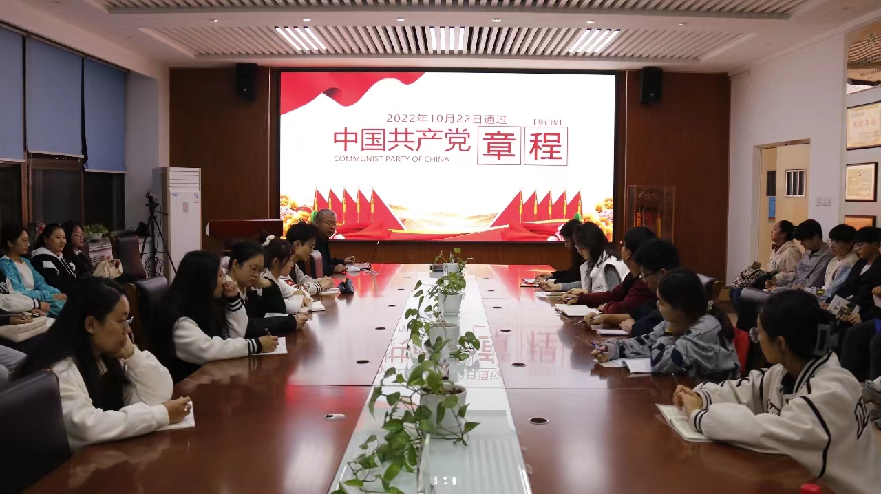 会议上,孙占伟立足自身对党章的所学所思所悟,从党章的修改内容和党章的发展历程这两个方面进行深刻讲解,重点讲述了党的二十大对党章的修改内容。孙占伟表示,当代青年人生逢其时,要把个人理想融入到党和国家的事业发展中,希望同学们一是要端正思想,树立正确的入党动机,在日常学习生活中增强党章学习常态化的意识,不断锤炼党性修养;二是要自觉培养斗争意识,不断提高自身的斗争能力,持续发扬斗争精神;三是在学习生活中要做到脚踏实地,严格对照党章要求自己,充分发挥先锋模范作用,担当起时代赋予青年人的历史使命。
