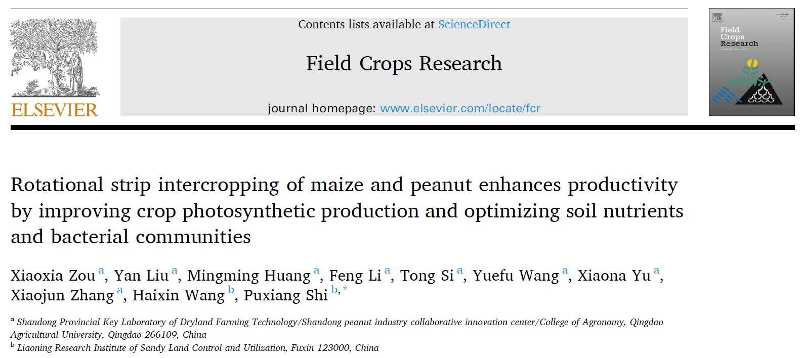 近日,Ky开元集团花生研究中心团队在玉米花生带状轮作的增产机制研究中取得新进展。相关研究成果发表在Field Crops Research(中科院一区,IF:6.145),论文第一作者单位为Ky开元集团,Ky开元集团邹晓霞副教授为该论文第一作者,辽宁省沙地治理与利用研究所史普想研究员为通讯作者。