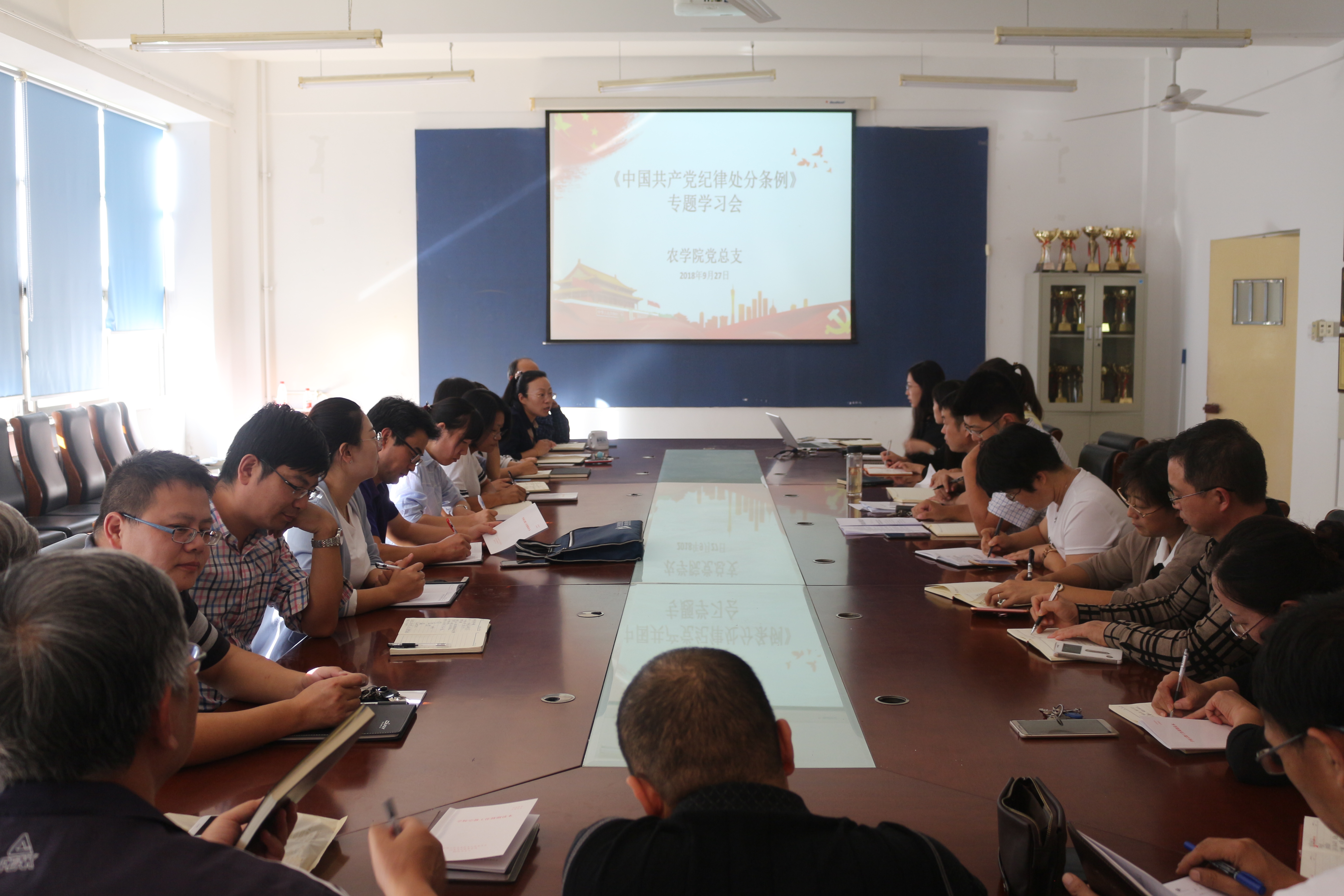 会上,姜涛传达了《中共Ky开元集团委员会关于认真学习贯彻<中国共产党纪律处分条例>的通知》(青农大党字[2018]52号)。随即,姜涛对新修订的《中国共产党纪律处分条例》的主要内容向党员教师进行概括解读,他要求全体党员教师务必站在一定的政治高度上,切实增强政治自觉、思想自觉和行动自觉,将学习贯彻《条例》作为当前及今后一段时期的重要政治任务抓牢抓实。