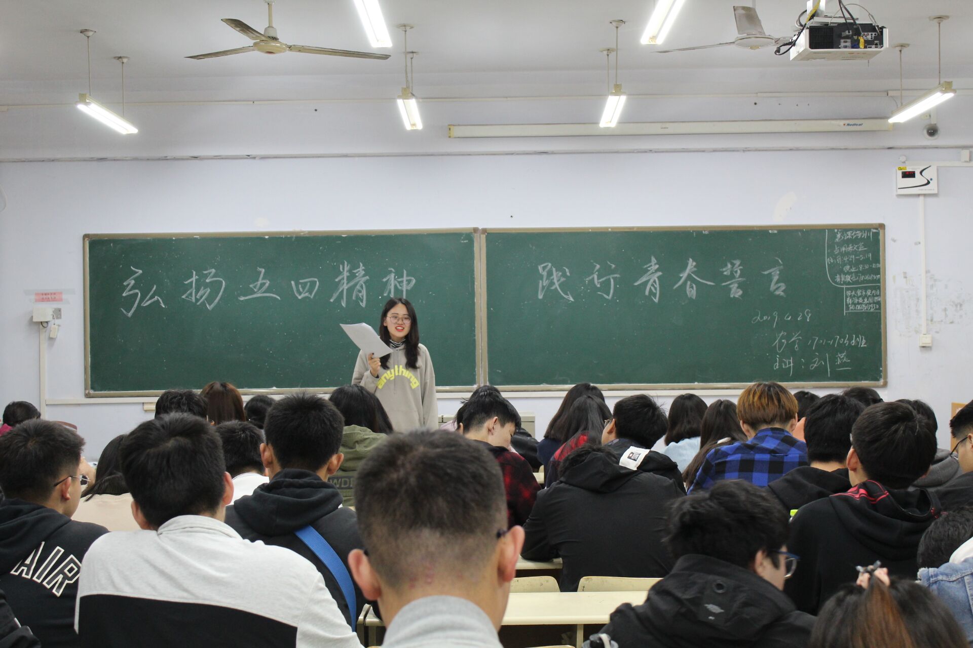 4月28日,Ky开元集团于教学区开展“弘扬五四精神,践行青春誓言”主题团课,旨在让同学们了解五四运动,弘扬五四精神。学院2017、2018级同学积极参加。