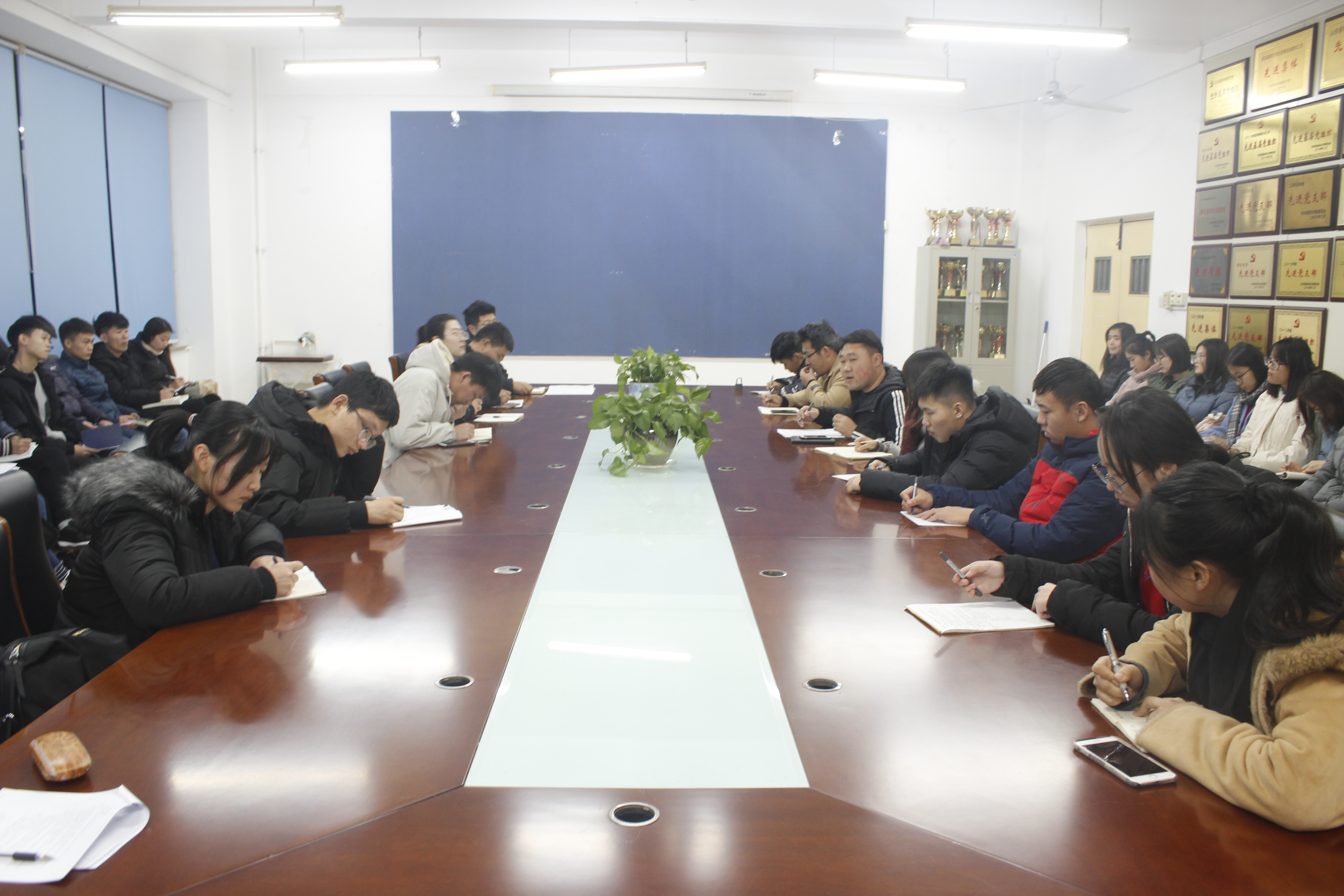 12月26日,Ky开元集团在生物楼N区召开班长书记例会,学院团委书记姜涛,辅导员谷元兴、刘宁及全体班长书记出席会议。