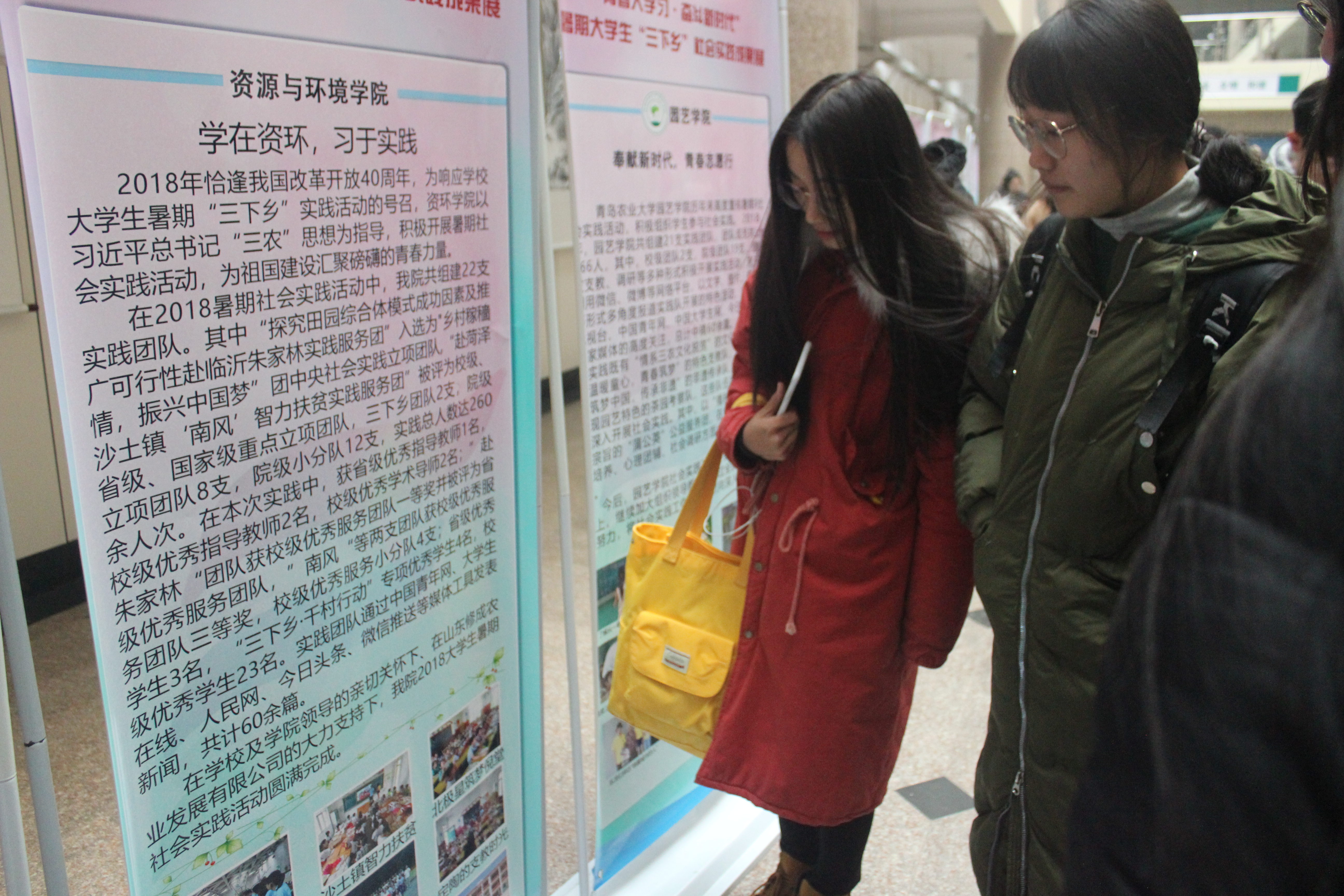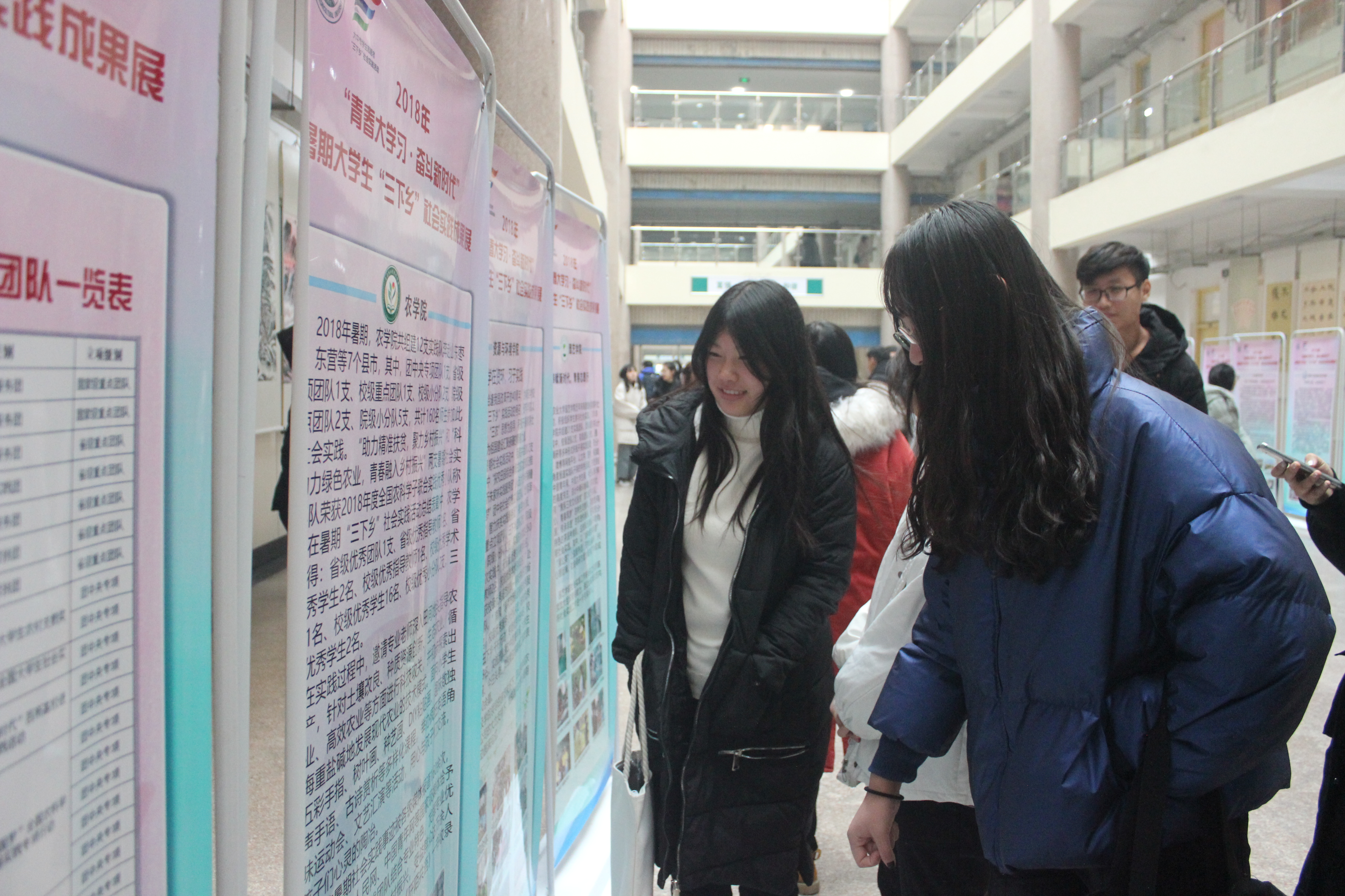 为增强学生社会服务意识,培养学生的创新实践能力,12月13日,在Ky开元集团团委的带领下,学院师生代表到教学区A区大厅对暑期实践成果展进行参观交流。