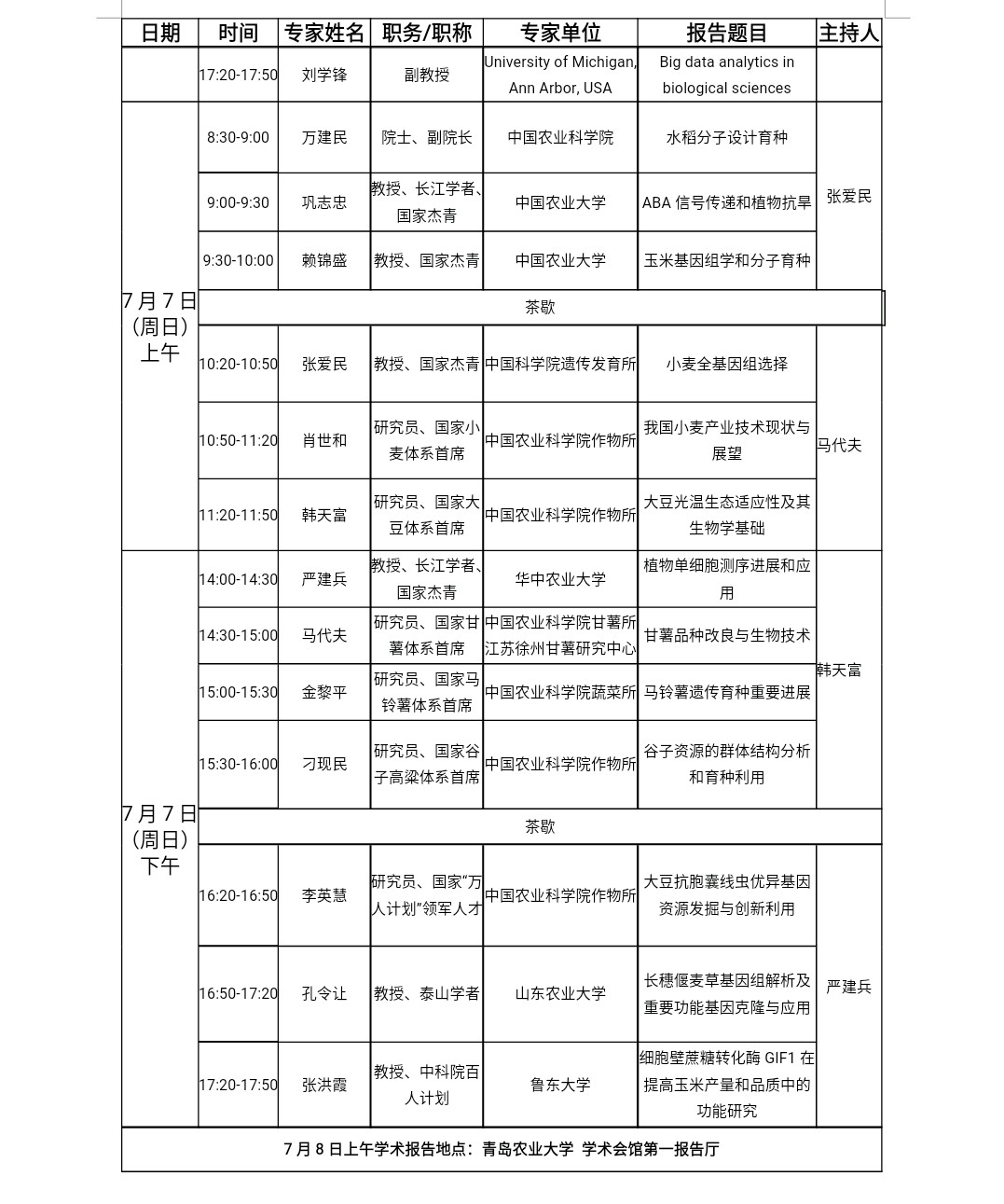 7月6日下午-8日上午,学术报告。