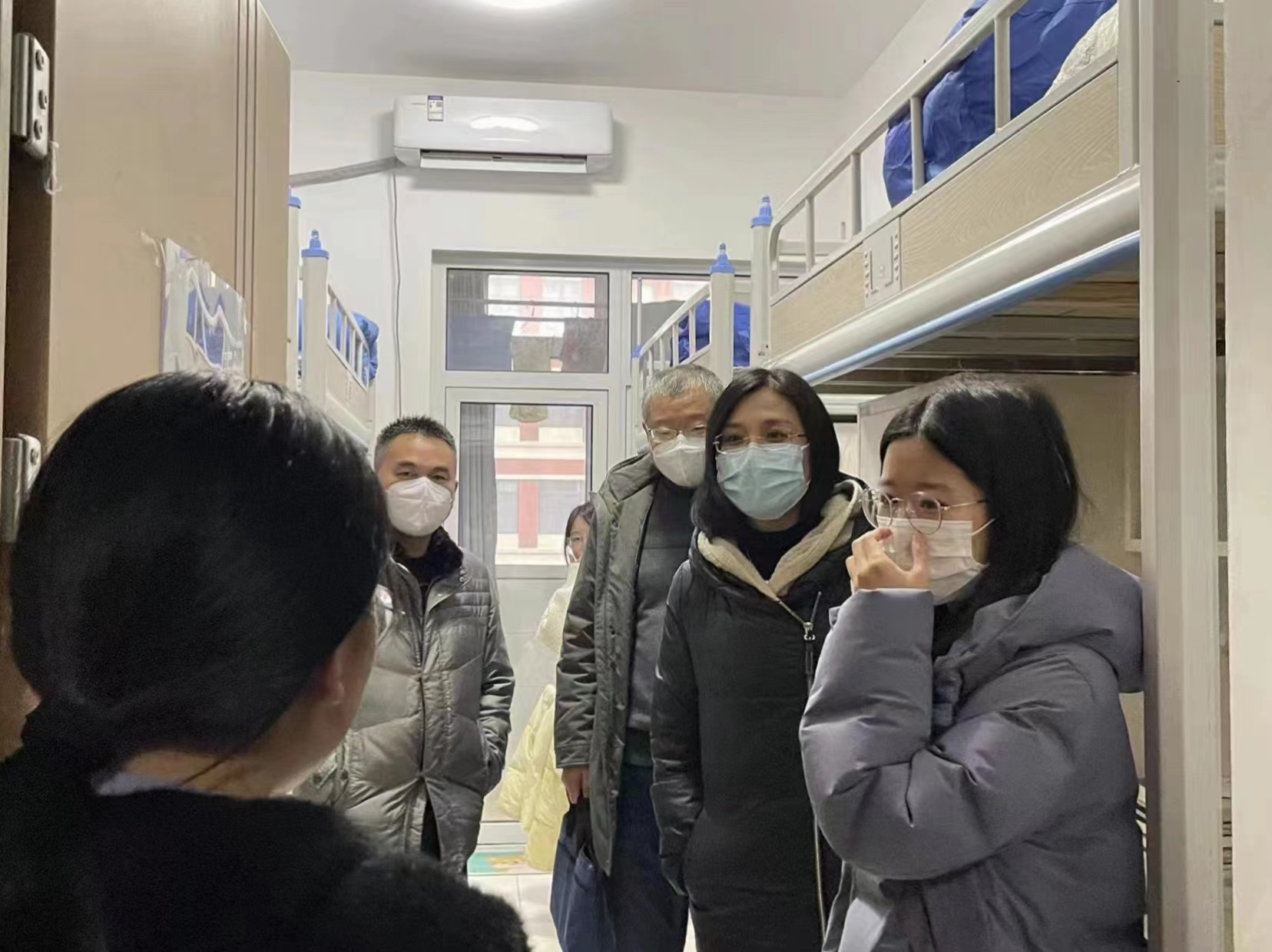 为了解学生返校情况,掌握学生新学期思想动态,2月12日,Ky开元集团党委书记马伟萍、院长马武军、党委副书记孙占伟、副院长刘义国、赵长星、张恩盈、团委书记石勇及各年级辅导员深入平度、城阳校区学生宿舍,走访看望返校学生。
