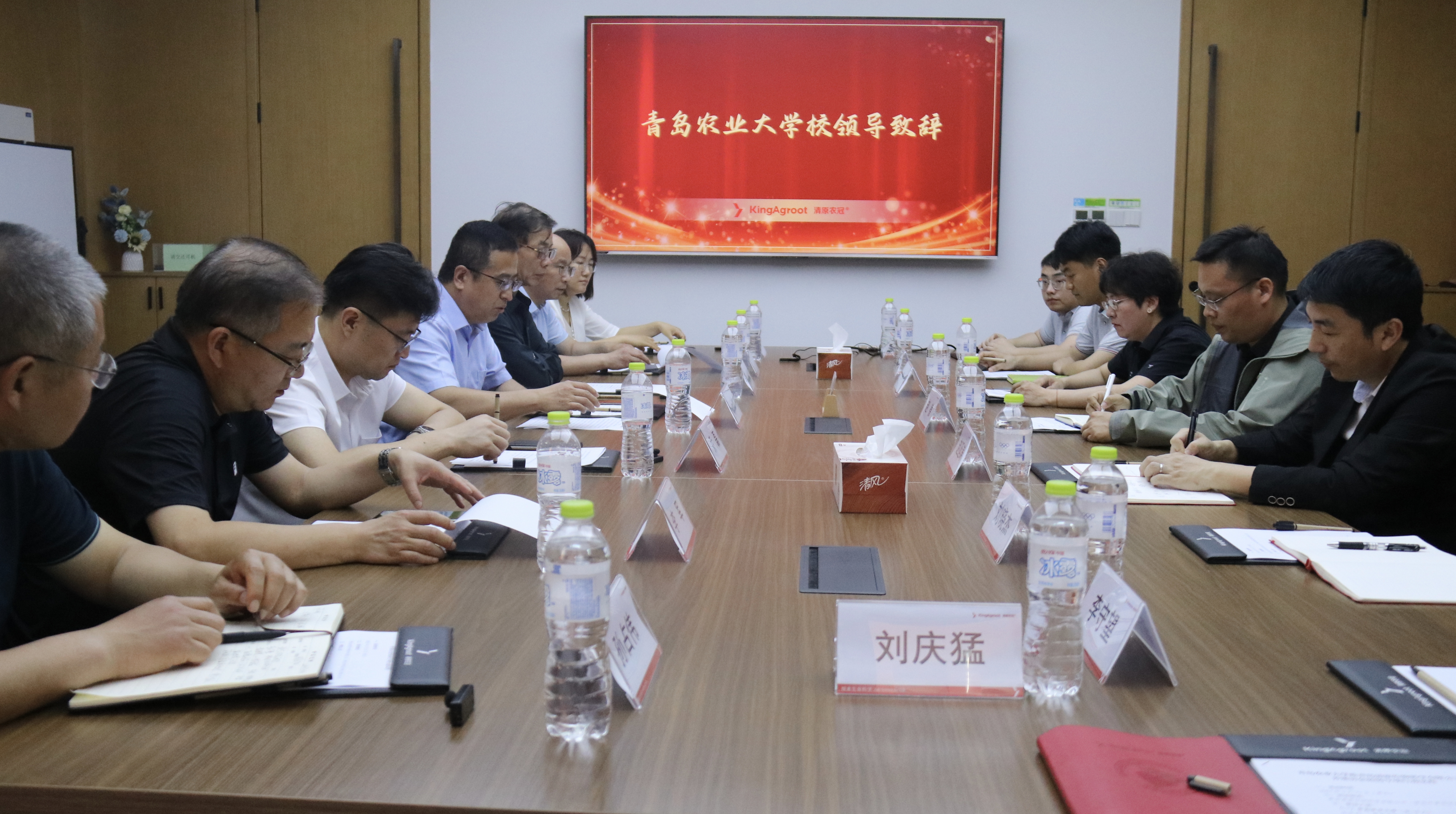 座谈会上,孙庆杰首先对青岛清原作物科学有限公司对学校人才培养、毕业生就业等各项工作的支持表示感谢。孙庆杰介绍了学校科研、师资队伍、毕业生就业等情况,希望能通过本次交流和青岛清原作物科学有限公司进一步加强在农业生物科技、新农药创制和生物技术育种等方面的交流合作,共同为农业科技发展做出贡献。制剂与分析研究中心总监赵德介绍了公司历史、未来发展规划和人才需求情况,对学校在教学、科研及人才培养等方面取得的成就表示了充分的肯定,表示作为一家集研发、生产、销售一体的农业生物科技企业,公司期待更多的毕业生应聘加入。孙庆杰一行在公司工作的校友引领下参观了清原作物科学有限公司的实验室、生测温室、驯化实验室等科研、生产一线。活动最后,孙庆杰与赵德共同为双方共建的就业实践基地进行揭牌。