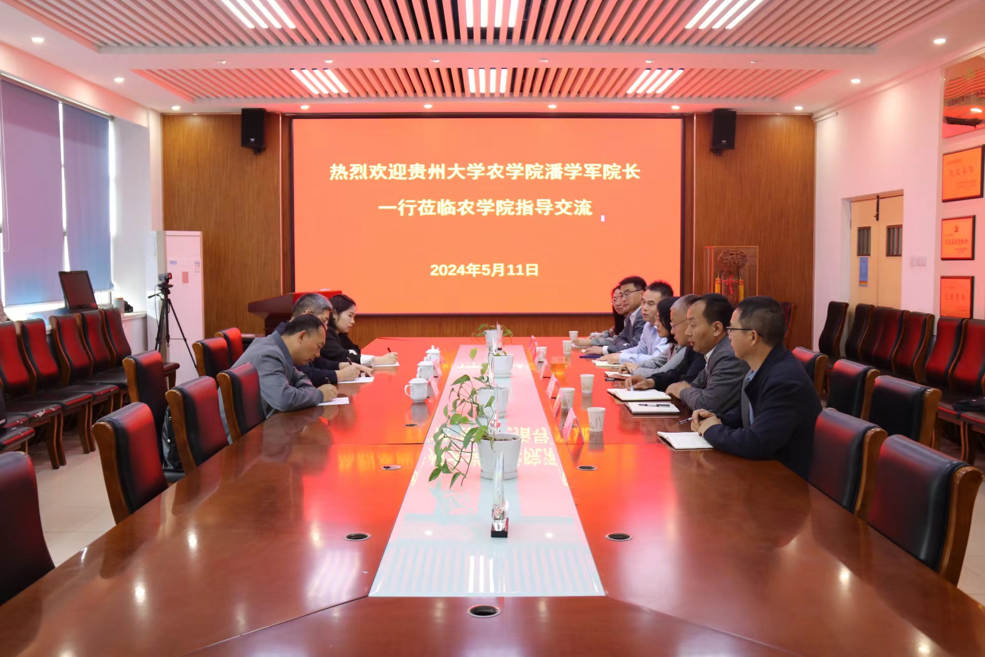 会议伊始,马伟萍对贵州大学Ky开元集团一行的到来表示热烈欢迎,对贵州大学Ky开元集团长期以来对学院的关心与支持表示感谢。潘学军介绍了贵州大学Ky开元集团根据区位优势,发展特色科学研究、人才培养、技术应用等方面的情况,表示将全力支持学院的发展,邀请学院到贵州大学Ky开元集团进行交流学习。刘义国从历史沿革、学科分布、人才培养、科研进展等情况介绍了学院发展概况。种子科学系系主任兰进好、作物遗传与育种系系主任穆平、作物栽培与生态学系系主任邹晓霞分别就各系的科研项目、实习实训基地、人才队伍、科研经费、科研成果等情况进行详细的介绍。双方就地方项目、人才引进、经费保障以及如何发展学院的特色专业和科研优势展开讨论。