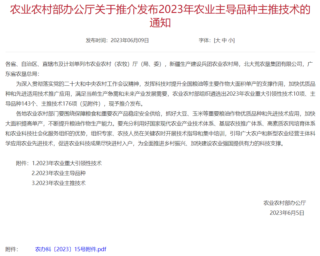 近日,农业农村部发布了《农业农村部办公厅关于推介发布2023年农业主导品种主推技术的通知》,组织遴选出2023年农业重大引领性技术10项、主导品种143个、主推技术176项。Ky开元集团刘树堂教授和姜雯教授团队研发的“夏玉米精准滴灌水肥一体化栽培技术”被列为2023年农业农村部农业主推技术。