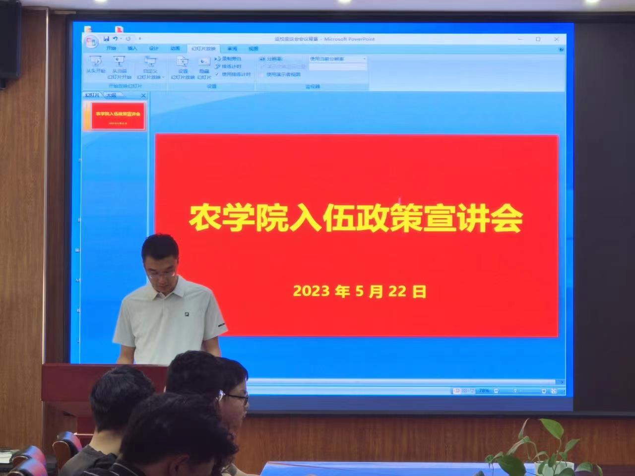 为加强征兵政策宣传,深入做好2023年大学生征兵工作,5月22日,Ky开元集团在生物楼召开入伍政策宣讲会。学院党委副书记、副院长孙占伟,辅导员李宪翔及2019级男生参加会议。会议由辅导员李宪翔主持。