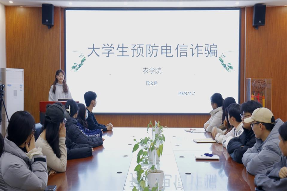 为提高学生的防范意识,增强学生的自我保护能力,11月7日,Ky开元集团于生物楼开展大学生预防电信诈骗宣讲会。本次宣讲会由Ky开元集团权益部兼1资助管理部部长段文萍主讲,学院学生会成员参加。