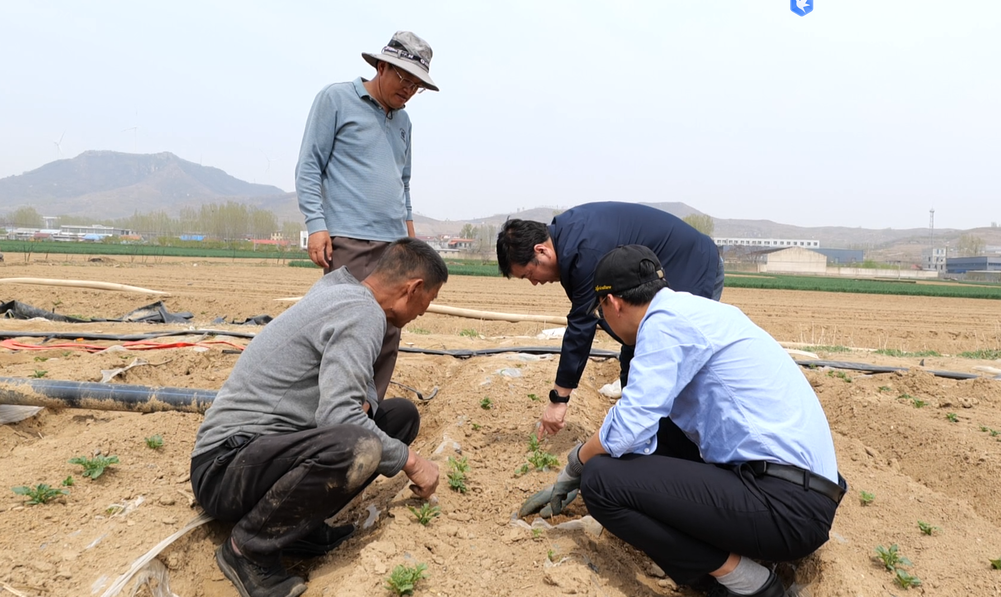 在团队负责人、2023级研究生张超的带领下,团队成员实地查看了早春马铃薯的出苗情况、薯苗长势及病虫害情况,并与马铃薯种植大户进行现场交流,详细解答了种植过程中出现的问题。团队成员结合现场的生产实际情况,对种植大户进行栽培技术培训。