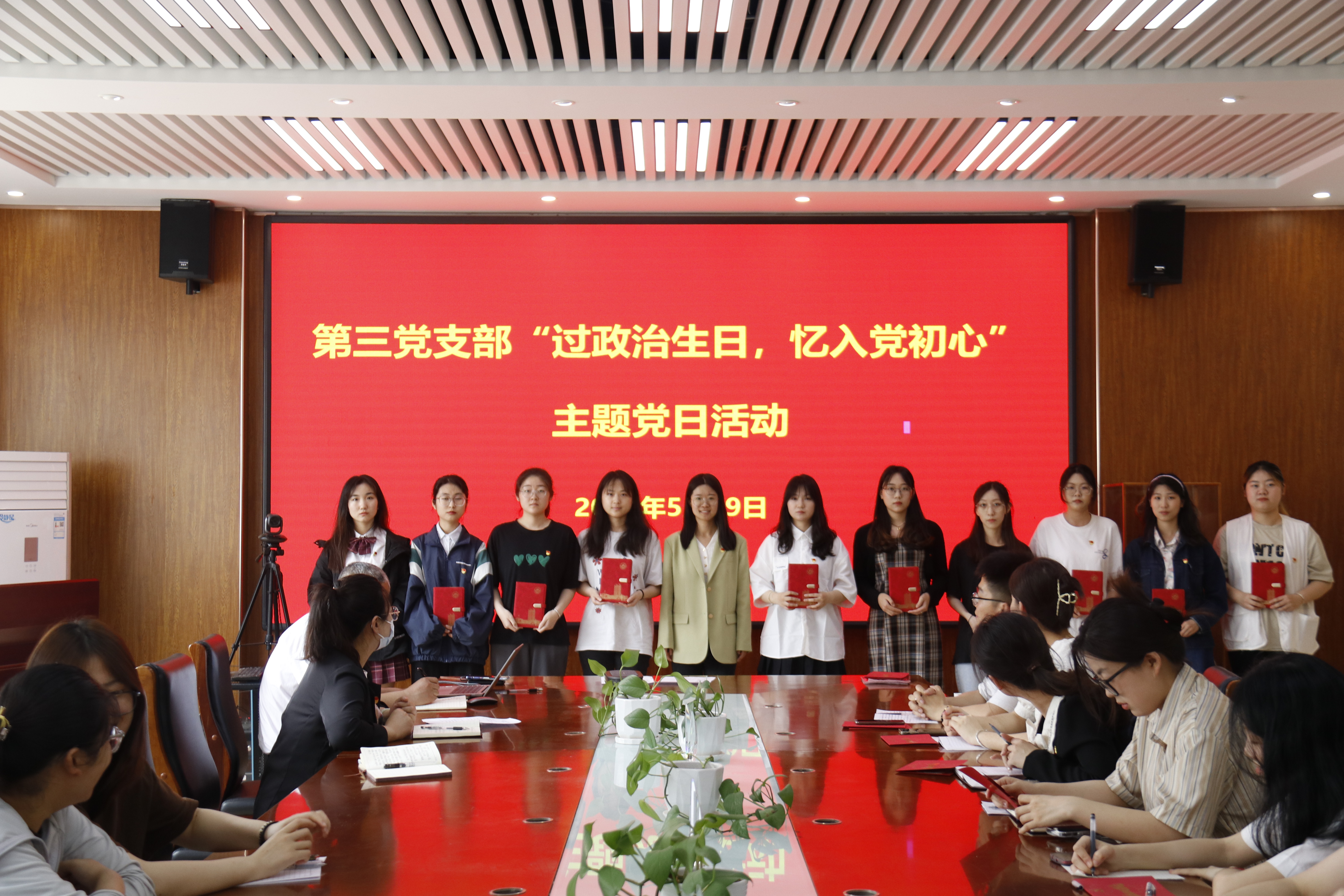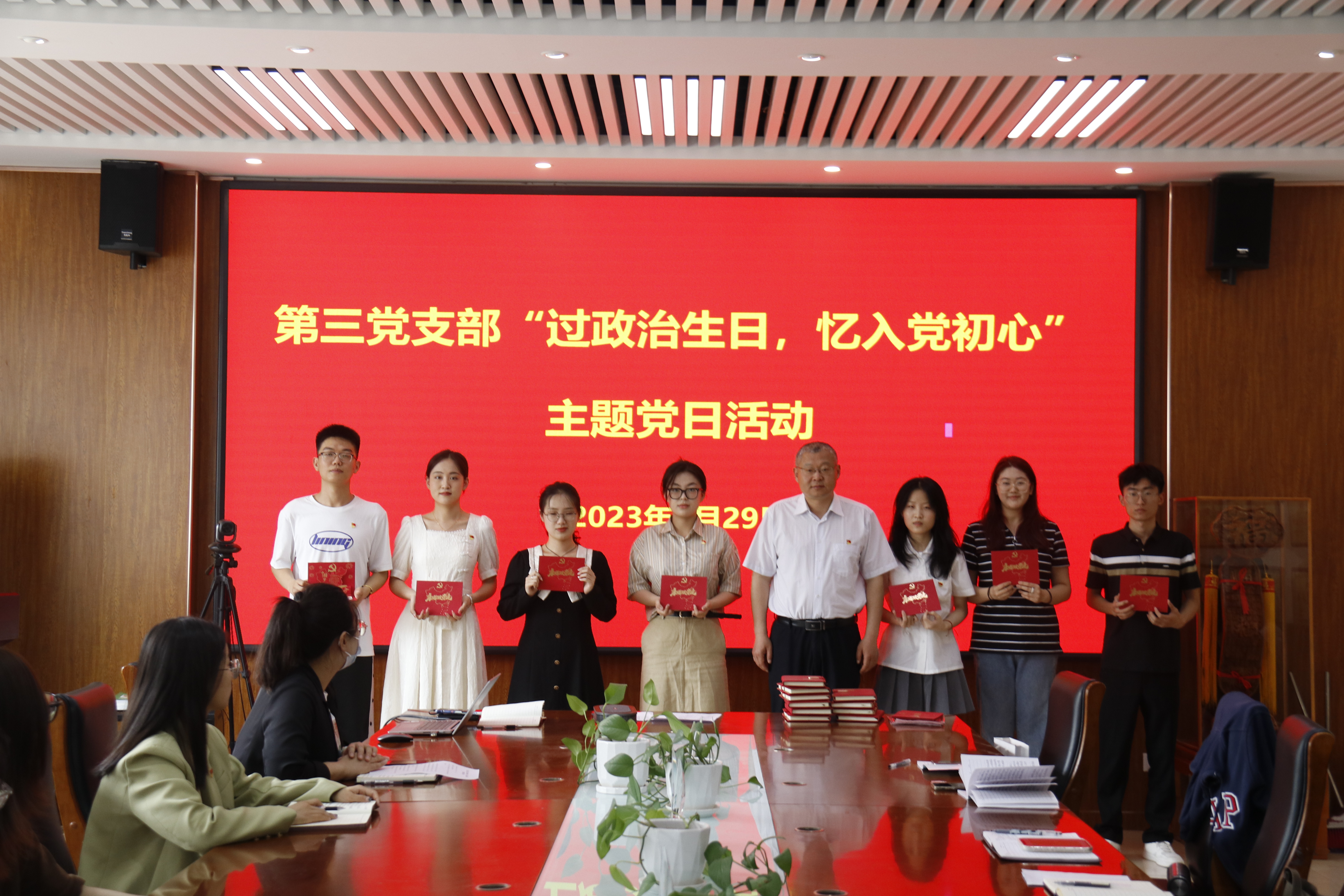 活动中,全体党员面向鲜红的党旗,重温入党誓词。孙占伟为过政治生日的支部党员颁发“政治生日贺卡”,都叶奇为毕业生党员发放纪念品。党员代表魏鹏、万静蕾、孙雪莲分别发表“政治生日”感言,表示将时刻牢记党员身份,坚守入党初心,不断加强党性修养。