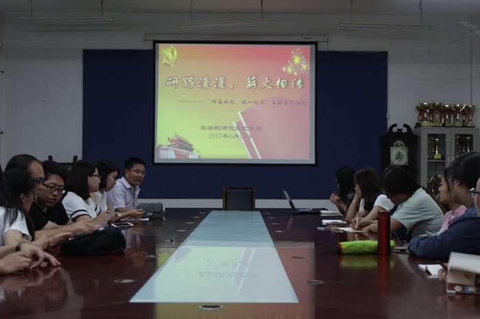谷元兴对毕业生党员取得的优秀成绩表示祝贺,鼓励大家要志存高远,努力探索,潜心科研,争取到更高的平台继续深造;要把握好每个节点,合理规划,能文能武,将来为社会提出青农方案,贡献青农力量。此次活动,很好的诠释了共产党员的先锋模范作用和乐于奉献精神,并且加强了交流,增进了友谊,使大家受益匪浅。